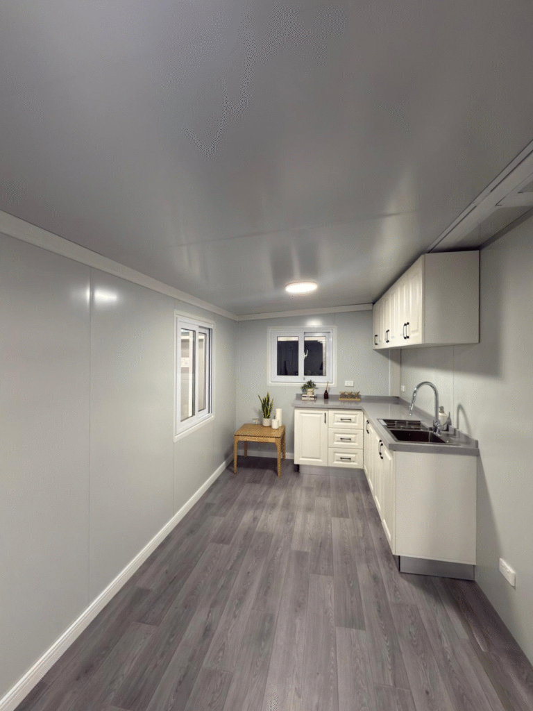 Enjoy our 20ft Modular Cabins – everything you need in a compact, comfortable home! With two cosy bedrooms, a smart toilet setup with separate wet and dry shower areas, and a spacious living room, it's perfect for small families, couples, or anyone needing extra space. Built tough with customisable colour steel exterior panels, and for first-time customers, we’re including a free water heater. Affordable, practical, and ready to go - the ideal choice for those who want comfort wherever they are.